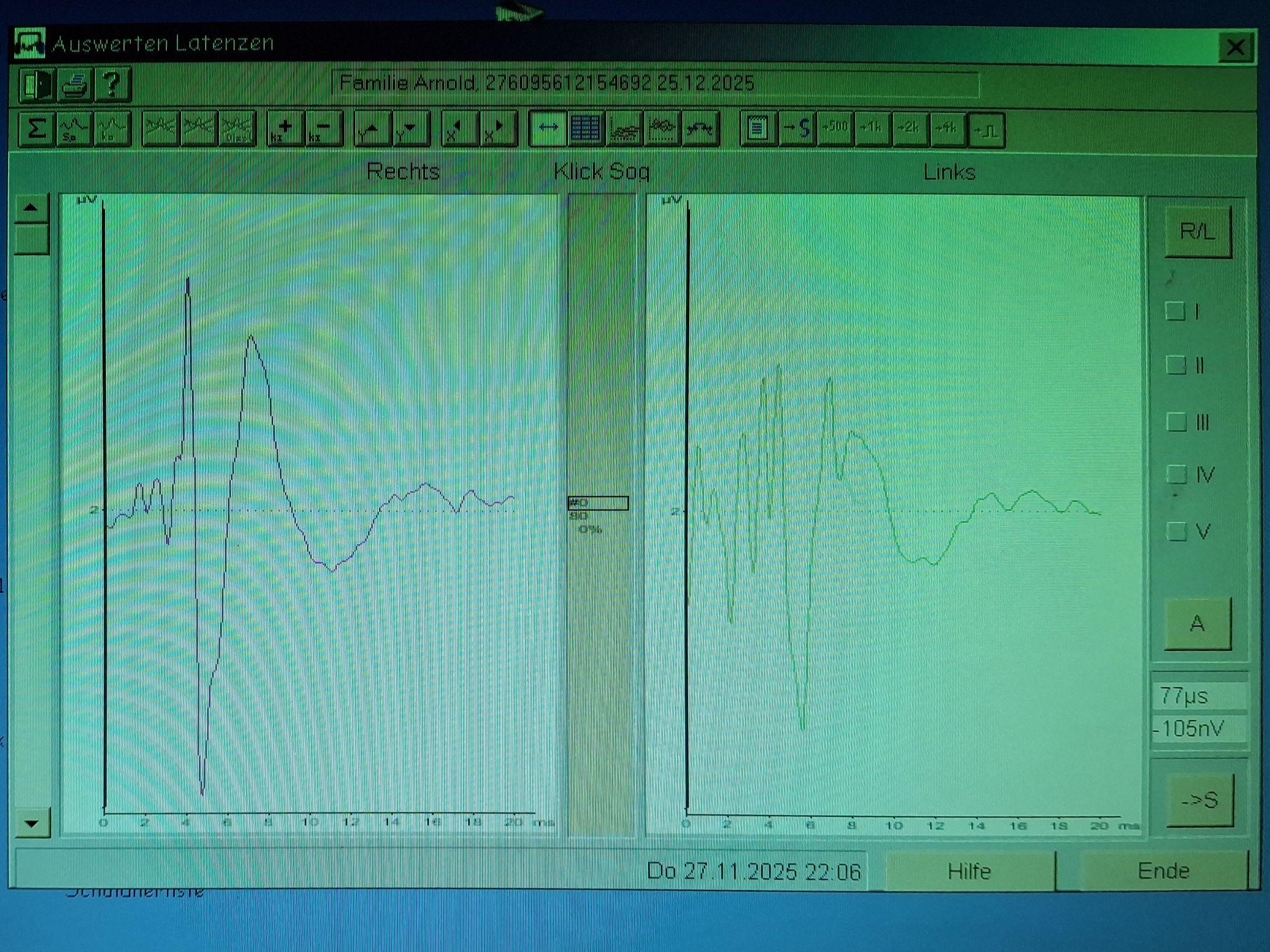 Nacheinander wurde nun jeder Welpe getestet, während wir gespannt die Messkurven auf dem Bildschirm verfolgten. Das erfreuliche Ergebnis: Alle Welpen sind beidseitig hörend.